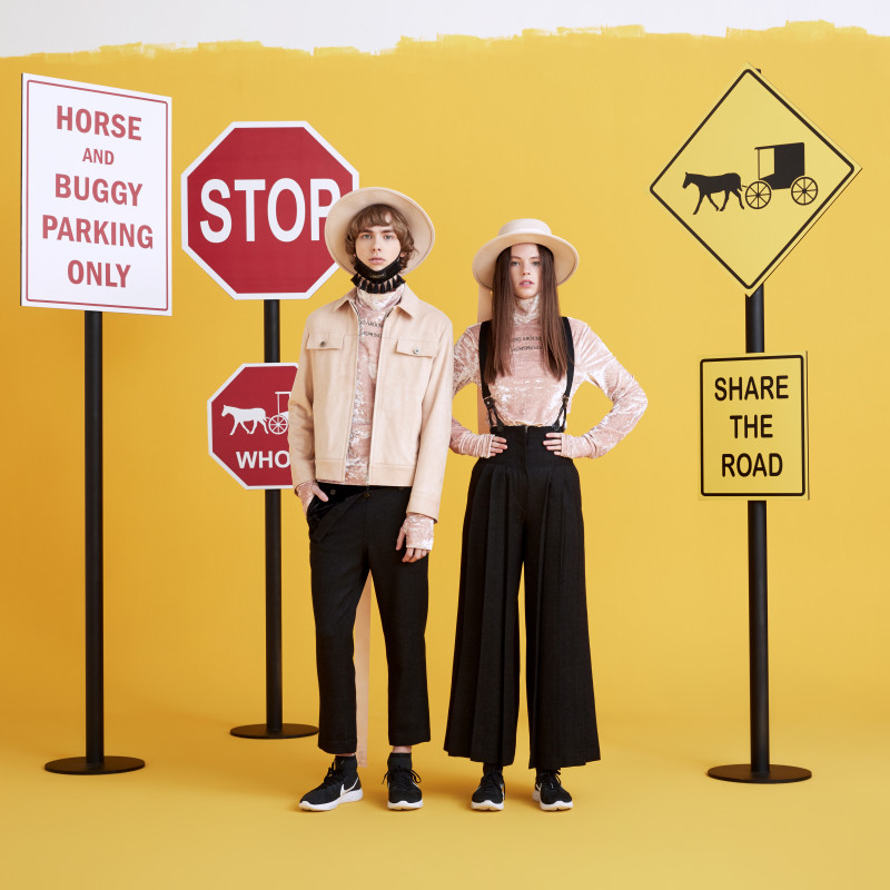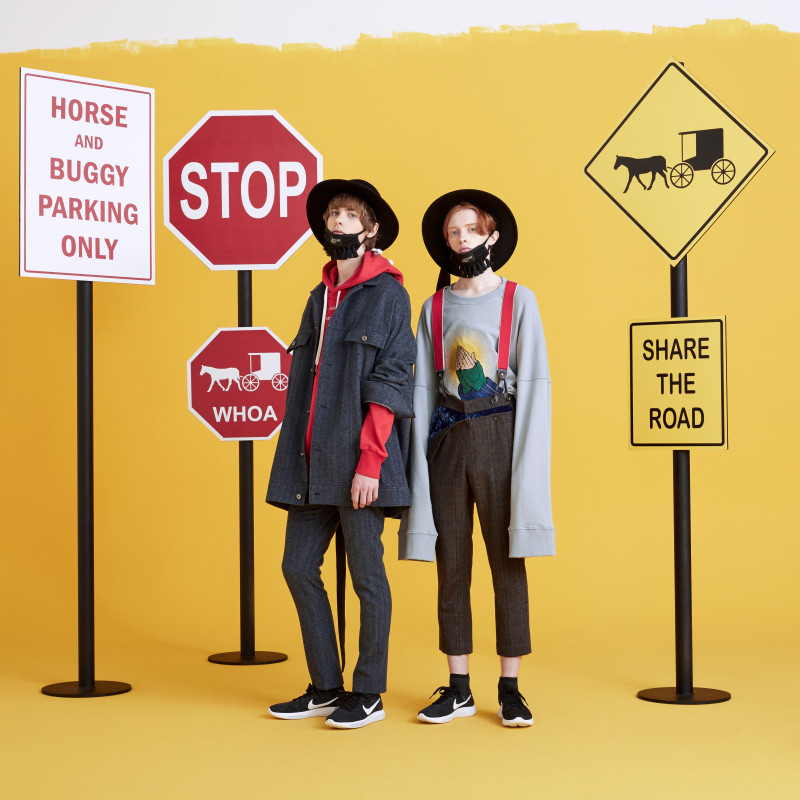 brim hats and scarves that graphically demonstrates iconic Amish beard make the Collection full of witty